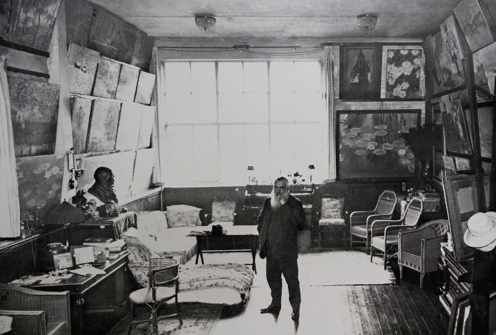 Depuis peu réaménagés, le premier atelier de Monet et son appartement, chambre à coucher et cabinet de toilette, se couvrent d’un tapis d’une autre nature. Tableaux et dessins, sous forme de copies, ont repris place à l’endroit où le maître les avait accrochés. Ses propres œuvres, toutes époques réunies, font de l’atelier un résumé de l’œuvre et une sorte de reliquaire familial. On peut faire confiance à Sylvie Patin, scrupuleuse experte de Monet, les cimaises sont conformes aux rares photographies anciennes du lieu. Cet accrochage fait rêver aux originaux, aujourd’hui dispersés (un tiers, tout de même, se voit au très actif musée Monet-Marmottan). Autant que l’évidence, le frisson saisit devant certaines associations voulues par le peintre, comme la paire que forment Camille sur son lit de mort (Orsay) et La Barque, aux verdâtres profondeurs sous sa chevelure d’eau effrayante. Monet, qui eut ses noirceurs, a donc vécu dans le musée de son œuvre, il n’a pas moins collectionné l’œuvre de ceux qu’il admira ou côtoya. Un livre manquait sur cette volonté d’inscription et presque d’immersion… Sylvie Patin vient de nous le donner, elle s’y intéresse utilement aux petits maîtres, minoritaires, et surtout aux grandes présences, deux marines de Delacroix, un beau Nu de femme de Renoir, 14 Cézanne (on en reparle plus bas) et trois Caillebotte.