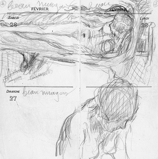 Bonnard, si respectueux à «l’impression initiale» dans sa quête d’absolu mallarméenne, n’eût pas désapprouvé le dévoilement auquel procède cette belle publication. Vingt de ses agendas, s’étirant de 1927 à 1946, sont la propriété de la BNF depuis 1993. Leur publication in-extenso est à désirer, bien qu’ils soient connus des spécialistes. Mais la promenade est toujours à refaire dans ces feuillets où règne une double météo, la couleur du ciel s’y enregistre autant que le baromètre des désirs, y compris celui de peindre. Epousant ou contredisant le format japonais des agendas, Marthe et ses ablutions, jusqu’en janvier 1942,  remplit la page de ses rondeurs et ses douceurs. Confirmant la nécessité de révéler « le non-vu de la vue » (Jean Clair), l’impudeur du couple ne connaît aucune limite, « les exigences de l’émotion » priment sur tout.  Un pur enchantement court à travers ces agendas, malgré la guerre, le délitement du groupe nabi et la persécution des marchands juifs qui les font disparaître, en 1942, de ses bilans financiers annuels. Il reviendra aux fils de Josse Bernheim d’organiser la première exposition de l’après-guerre. Puis les Américains, le MoMA notamment, s’empareront de l’artiste faussement informel… SG / Céline Chicha-Castex, Alain Lévêque et Véronique Serrano, Pierre Bonnard. Au fil des jours. Agendas 1927-1946, L’atelier contemporain / Musée Bonnard, Le Cannet / BNF, 35€.