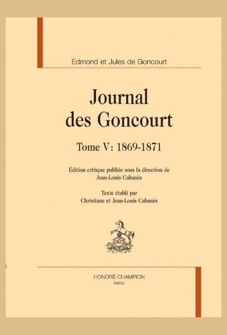 *Edmond et Jules de Goncourt, Journaldes Goncourt, édition critique publiée sous la direction de Jean-Louis Cabanès, texte établi par Christine et Jean-Louis Cabanès, Honoré Champion, Classique, 98€.
